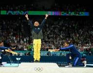 París 2024 El gesto de Simone Biles en el podio de los Juegos Olímpicos de París 2024, tras el oro de Rebeca Andrade