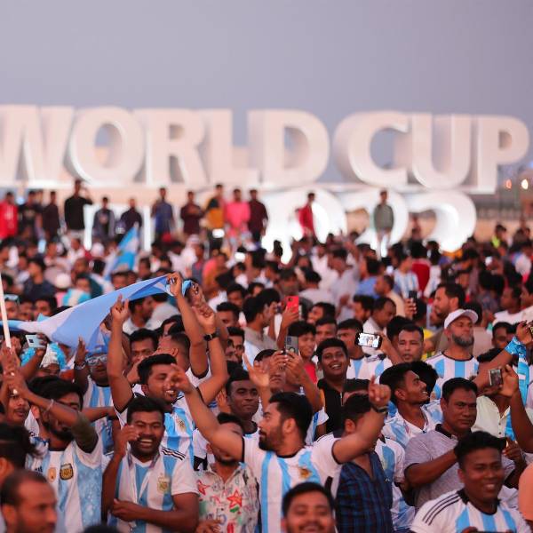 Mientras el medio argentino TyC Sports registraba la concentración de cierta parcialidad de la fanaticada argentina presente en el país del Mundial, los hinchas comenzaron a cantar. No obstante, era inesperado que sus melodías sobrepasen la línea del respeto.