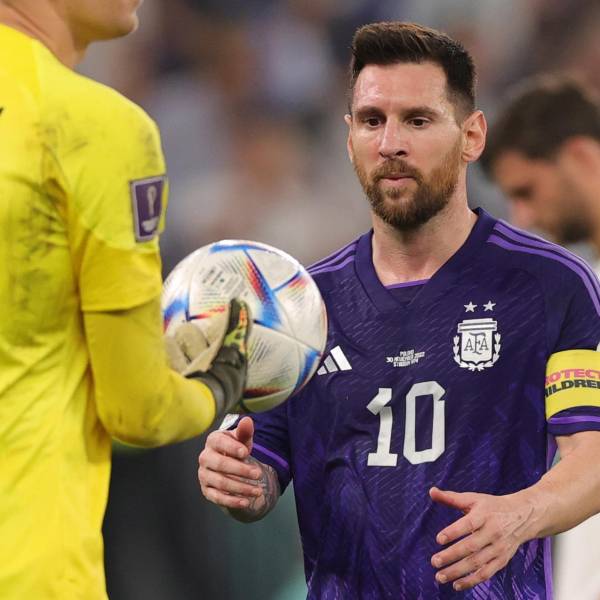 La jugada se revisó en el VAR y se decretó un penal para Argentina. Era el minuto 38, Messi cobró y el arquero polaco Wojciech Szczesny atajó el disparo.