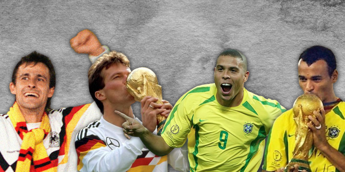 Los brasileños Cafú y Ronaldo, y los alemanes Lothar Matthäus y Pierre Littbarski, cada dupla compañeros de selección, disputaron cada uno tres finales de la máxima cita del fútbol mundial.