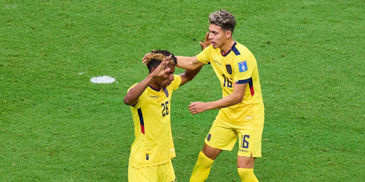 Kevin Rodríguez y Jeremy Sarmiento de Ecuador durante el partido Qatar vs. Ecuador, correspondiente al Grupo A del Mundial.( )