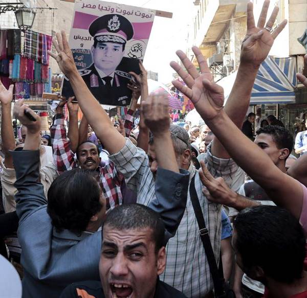 EGIPTO.- Una multitud apoya al depuesto presidente Mursi, en el marco del cuadragésimo aniversario de la guerra de 1973 con Israel. Foto: EFE