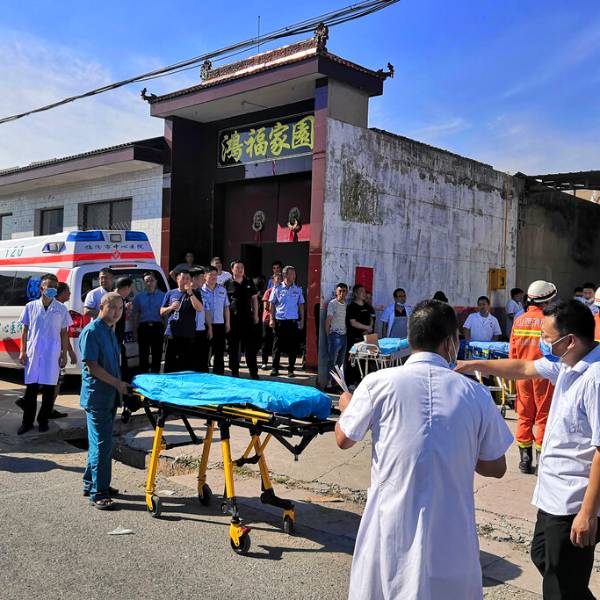 Rescatistas y médicos se reúnen cerca del lugar en donde se derrumbó un restaurante de dos plantas en Xiangfen. Foto: AP