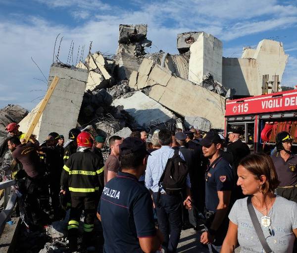 En medio de impresionantes bloques de concreto, cientos de socorristas buscan sin descanso sobrevivientes entre los escombros del puente que se derrumbó. "No dejaremos de buscar personas hasta que estemos seguros de que nadie se encuentre bajo los escombros", aseguró el jefe de los bomberos, Bruno Frattasi.