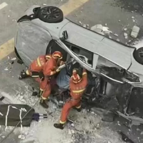 2 muertos tras la caída de un auto eléctrico desde el tercer piso de un edificio en China