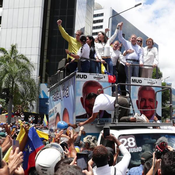 Machado y González Urrutia llegaron al lugar a bordo de un camión, desde el que recorrieron unos kilómetros en caravana, y ofrecieron un discurso en el que reiteraron que la “lucha” que promueven es pacífica y busca que las autoridades reconozcan que el chavismo perdió los comicios.