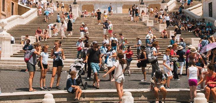 Turistas en la Plaza España, en Roma (Italia). ( )