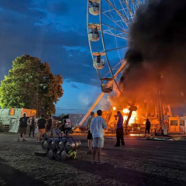 Un incendio en una noria durante el Festival Highfield, cerca de Leipzig, Alemania, dejó más de 20 heridos la noche del sábado 17 de agosto. Las impactantes imágenes muestran dos vagones en llamas mientras una columna de humo negro se elevaba sobre el evento, provocando pánico entre los asistentes.
