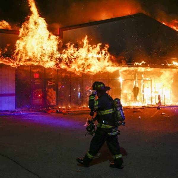 EE.UU.- Vehículos y edificios en llamas -