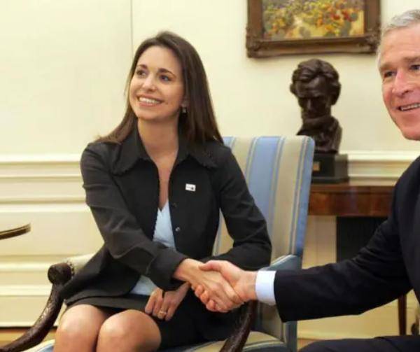 En 2005, Machado, quien entonces tenía 37 años, fue recibida por el presidente estadounidense George W. Bush en la Sala Oval de la Casa Blanca.