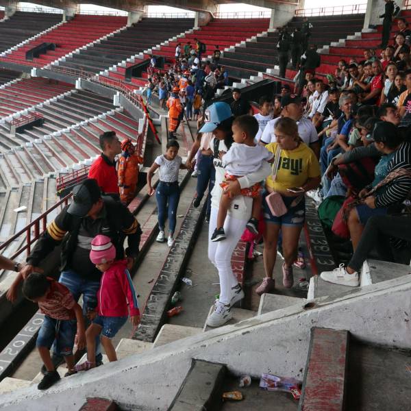 Desplazados por la violencia en el Catatumbo se reúnen en el estadio General Santander, en Cúcuta (Colombia). EFE/ Mario Caicedo( )