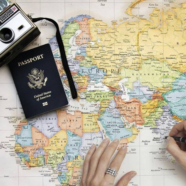 Imagen referencial: Mapa junto a pasaporte y cámara.( )
