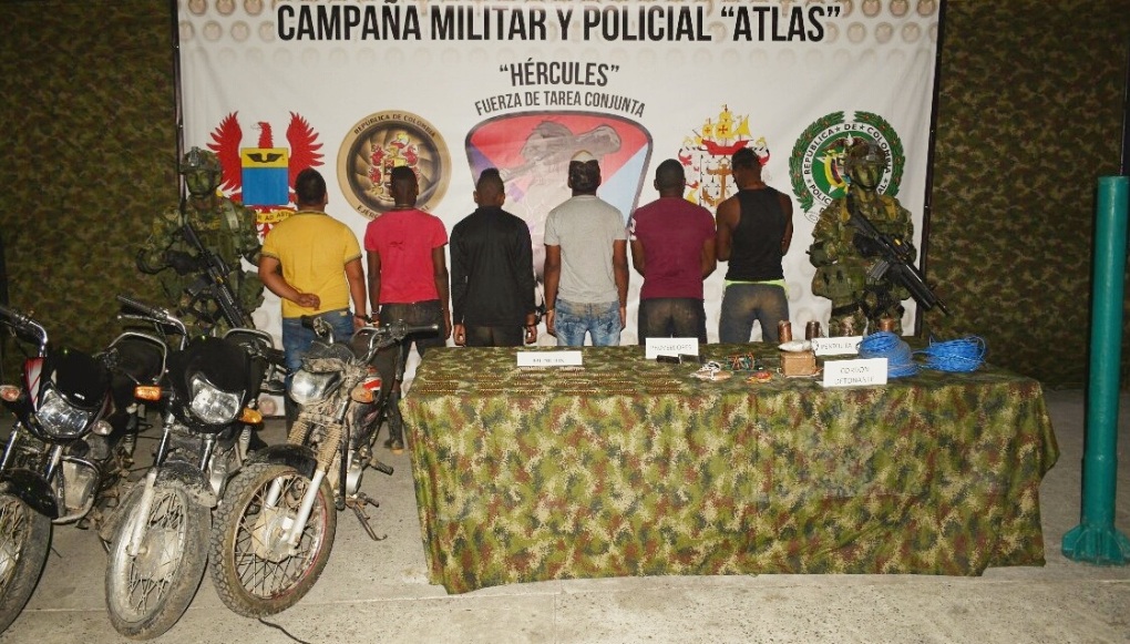 A través de un comunicado, la Fuerza de Tarea Conjunta Hércules del Ejército Nacional colombiano en coordinación con la Policía Nacional del país vecino, lograron seis capturas en el corregimiento de Candelillas en el municipio de Tumaco.