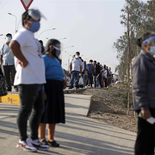 Más de 25 millones de peruanos acuden desde las 07.00 horas de hoy a votar para elegir al nuevo presidente para el periodo 2021-2026, dos vicepresidentes, 130 legisladores y cinco representantes para el Parlamento Andino, en unos comicios marcados por las medidas para evitar los contagios por la covid-19.