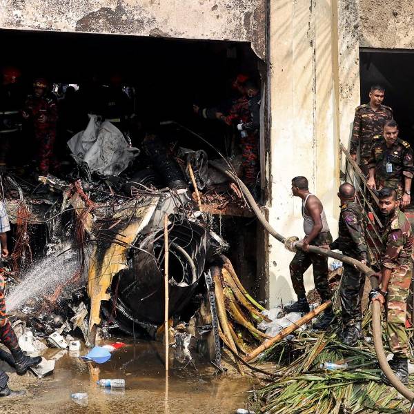 Se elevan a 16 los muertos y 100 los heridos en el accidente de un avión militar en Bangladés
