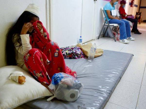 Fatigados por el calor, algunos descansan sobre colchonetas en el suelo ante la falta de camas. Muchos tienen vendados un brazo, un pie o parte de la cabeza por las heridas sufridas.