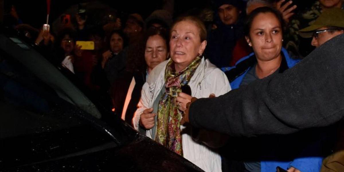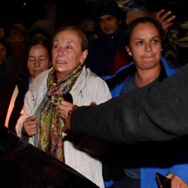 La esposa de Sebastián Piñera, Cecilia Morel, al llegar al centro médico donde fue trasladado el cuerpo del exmandatario tras el accidente.( )
