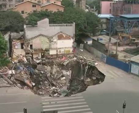 En la ciudad china de Guangzhou varios edificios cayeron debido al hundimiento de un terreno, que dejó además sin suministro eléctrico a 3.000 casas del barrio.