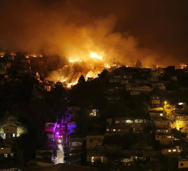 La llegada de la luz diurna ha permitido el despliegue de una docena de aviones y helicópteros para combatir el fuego desde el aire y también ha hecho posible dimensionar una catástrofe que ha arrasado cinco poblados cerros de esta ciudad, donde viven unas 250.000 personas y también se encuentra el Parlamento y la Armada de Chile.