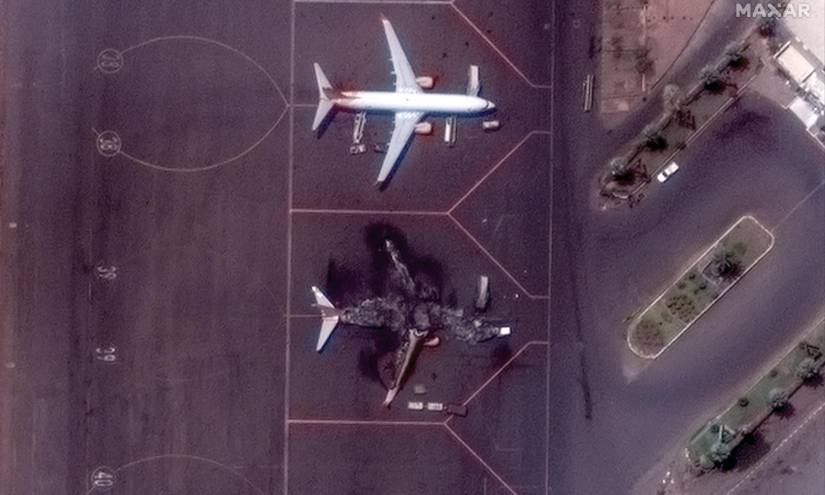 Una imagen de satélite proporcionada por Maxar Technologies muestra humo en el Aeropuerto Internacional de Jartum, Sudán, el 16 de abril de 2023. EFE/EPA/MAXAR TECHNOLOGIES HANDOUT( )