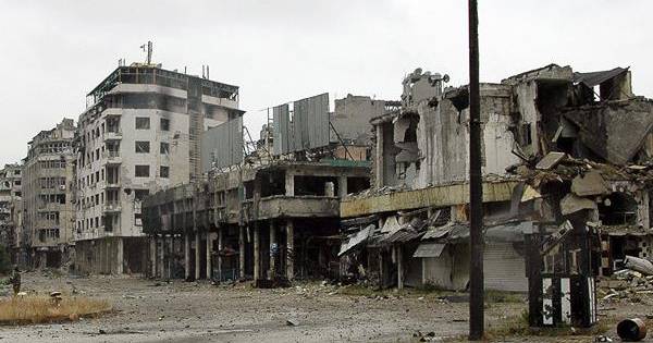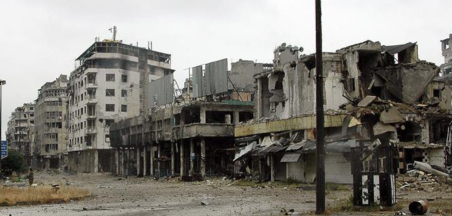 HOMS, Siria.- Vista general de lo que fue la entrada al mercado al aire libre de Hamidiya en el casco antiguo de la ciudad de Homs. Foto: EFE