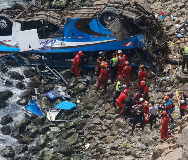 Sólo seis ocupantes del autobús salieron con vida del accidente, que ocurrió en "la curva del diablo" de la carretera Pasamayo, que es un desvío de la ruta Panamericana, a unos 45 kilómetros al norte de Lima.