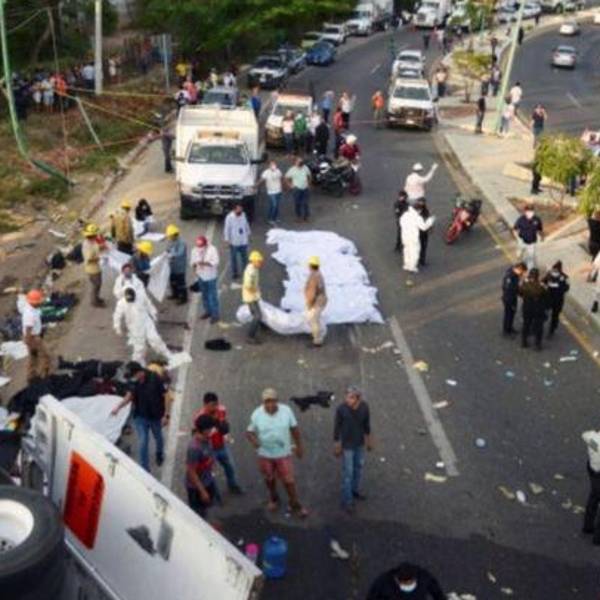 Al menos 53 migrantes de Centroamérica murieron cuando el tráiler en el que viajaban hacinados sufrió un accidente este jueves en el estado mexicano de Chiapas.