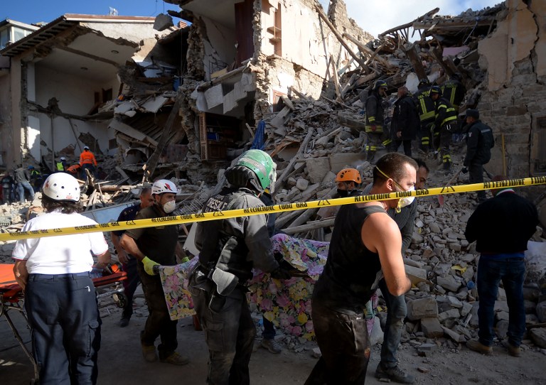 El terremoto de 6,0 grados se produjo a las 03h36 cerca de la población de Accumoli. Foto: AFP