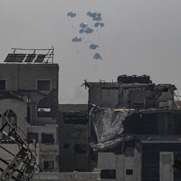 Ayuda humanitaria lanzada desde el aire por el Ejército de los Emiratos Árabes Unidos sobre la parte sur de la ciudad de Gaza( )