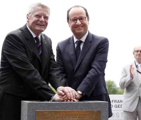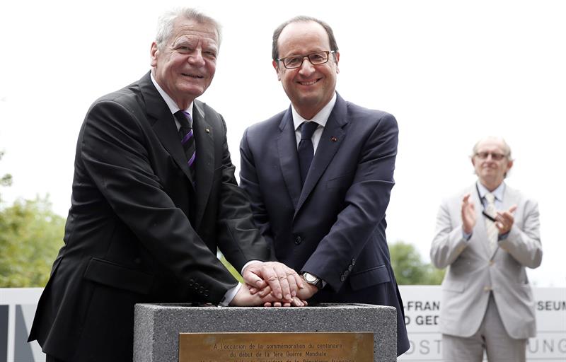 El presidente de Francia, François Hollande, y el de Alemania, Joachim Gauck, conmemoraron hoy el centenario del inicio de la Primera Guerra Mundial con una ceremonia conjunta en el pico Hartmannswillerkopf, que constituyó uno de los puntos clave de los combates de esa contienda en la región de los Vosgos.