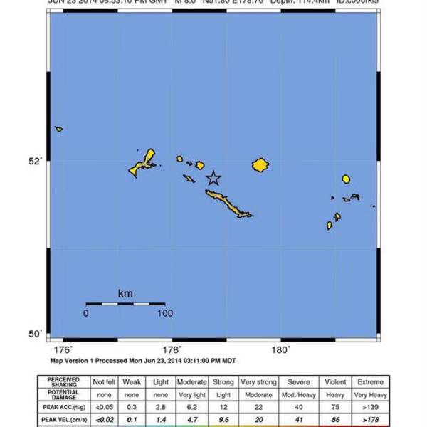 El temblor se produjo a las 11h53 hora local (20h53 GMT) y su epicentro se localizó 24 kilómetros al sureste de la remota isla de Sitkin y a 114 kilómetros de profundidad.