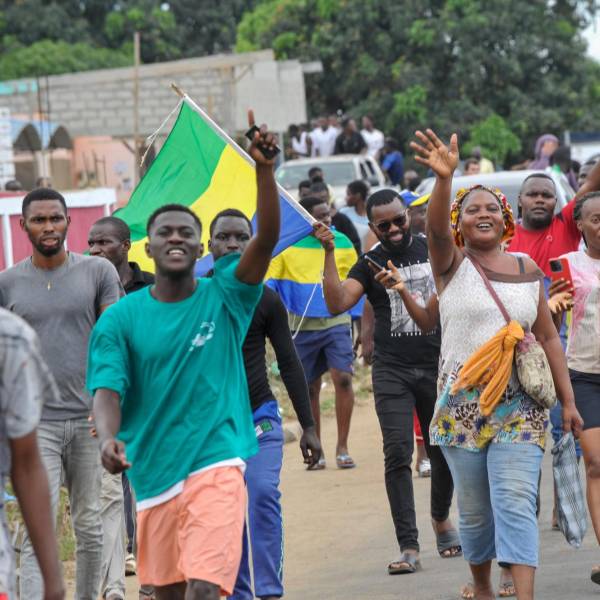 Centenares de personas salieron a las calles de Libreville, la capital de Gabón, en apoyo de los militares que aseguraron haber dado un golpe de Estado contra el presidente gabonés, Ali Bongo, cuya familia está en el poder desde 1967( )