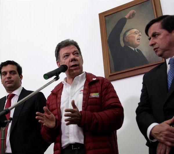 En declaraciones a periodistas, Santos se mostró optimista con la posibilidad de atraer a su campaña a los partidos que quedaron el domingo fuera de la disputa presidencial y especialmente a los que se identifican con su proyecto de poner fin al conflicto armado de 50 años en el país mediante el proceso de paz con la guerrilla de las FARC.