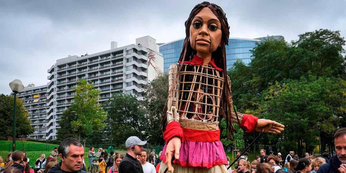 Una enorme marioneta de una niña siria llega a EE.UU. para humanizar la migración