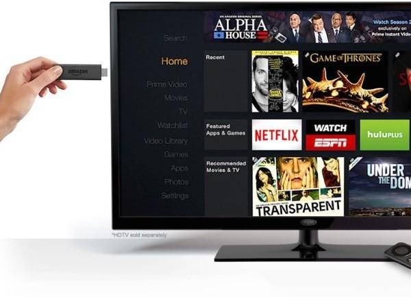 Enchufado al televisor en una conexión HDMI, el "Fire TV Stick" provee acceso al servicio de video de Amazon, así como a otras ofertas de video en línea como Netflix, Hulu Plus, WatchESPN y NBA Game Time, en Estados Unidos.