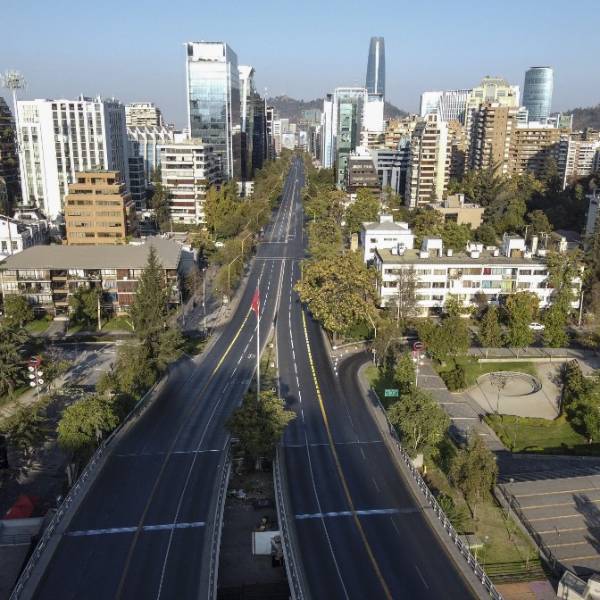 Vista aérea de la ciudad de Santiago, en Chile. En ese país también se ha decretado el toque de queda. Foto: AFP