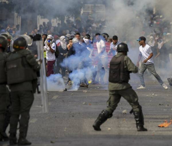 Las refriegas con los antimotines estallaron luego de una marcha que reunió a decenas de miles de opositores para exigir un "gobierno de transición" que llame a elecciones, al considerar ilegítimo el mandato iniciado por Nicolás Maduro el pasado 10 de enero.