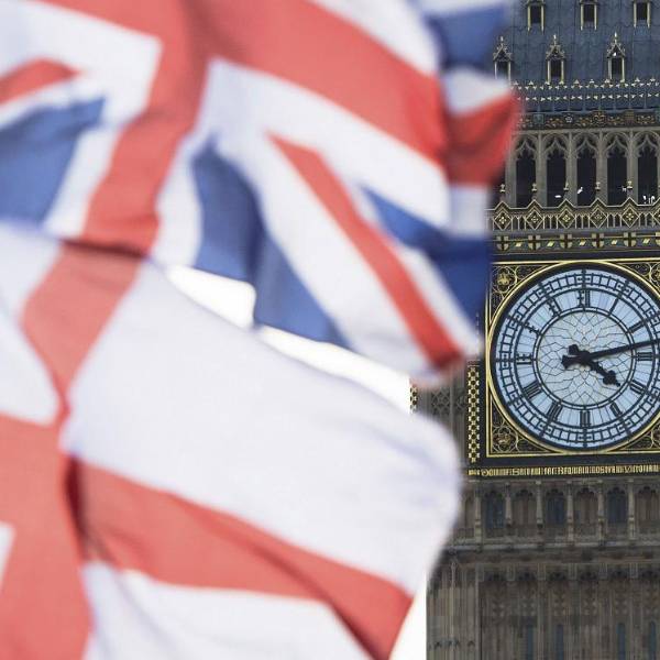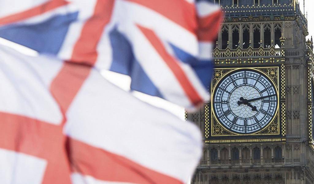 Vista de las banderas de Reino Unido e Inglaterra junto al Big Ben en el Parlamento británico. Foto: Archivo de EFE