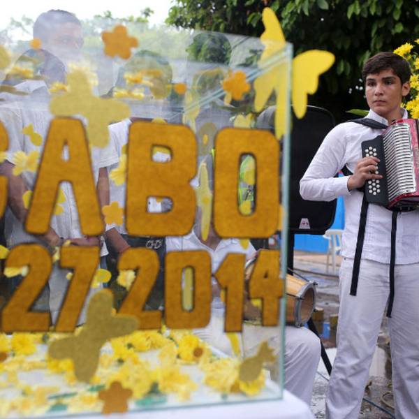 Mariposas de papel y flores amarillas, las preferidas de Gabo, adornaron la caravana en la que además se escucharon aires vallenatos, música típica de la costa atlántica colombiana que era una de las predilectas del escritor.