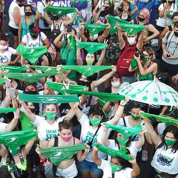 La aprobación de la ley luego de sucesivos intentos del movimiento feminista para que obtuviera luz verde en el Congreso fue festejada por una multitud de activistas pro aborto vestidas con prendas verdes, el color que las identifica.