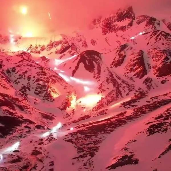 Las imágenes difundidas a través de redes sociales muestran, en cámara rápida, el descenso coordinado de los esquiadores portando antorchas encendidas, generando un impactante contraste de luz y color sobre el paisaje blanco y nevado de la montaña.