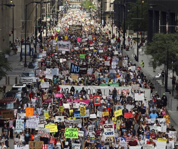 CHICAGO, EEUU.- Miles de personas protestaron contra las políticas migratorias de Trump. Foto: AP
