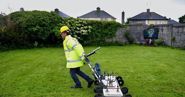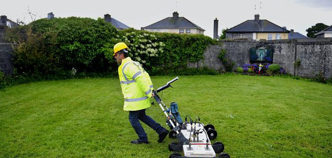 TUAM, Irlanda.- Un ingeniero usa un georradar en el lugar donde se encuentran enterrados hasta 800 niños en una fosa sin identificar. Foto: EFE
