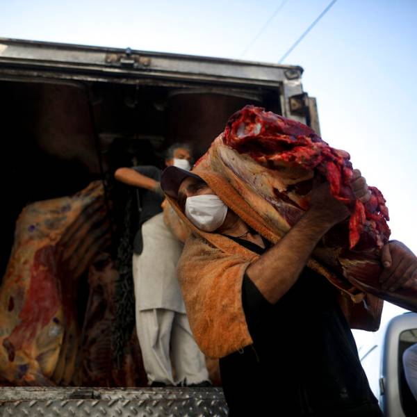 Un trabajador entrega carne a carniceros en el mercado de Mataderos en Buenos Aires, Argentina. Foto: AP