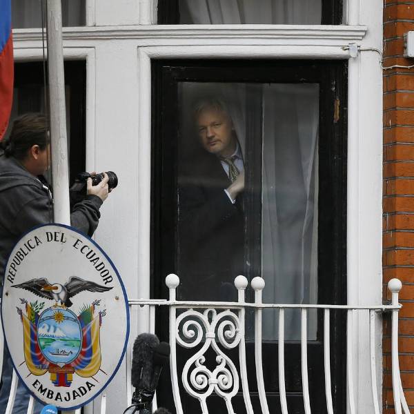 Imagen de Archivo de Julian Assange en la embajada de Ecuador en Londres