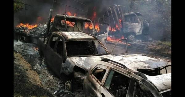 Miembros del Ejército de Liberación Nacional (ELN) incineraron tres camionetas y dos tractomulas en el sitio conocido como 'El 18', ubicado en Medellín y Quibdó, en el noroccidente de Colombia. El hecho sucedió en el marco de una protesta de comunidades indígenas que exigían al régimen colombiano cumpla con el acuerdo del Paro Nacional Agrario, según declaraciones de Bismarck Calimeño, secretario del interior del departamento colombiano de Chocó.