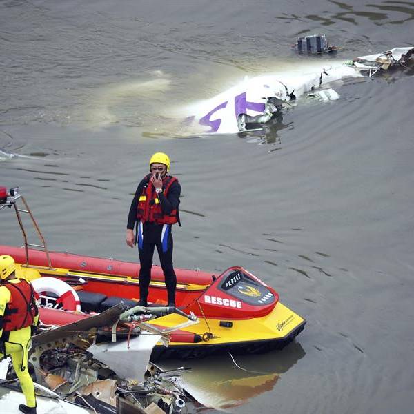 El aparato -con 58 personas a bordo, entre ellas cinco tripulantes y dos menores- se precipitó al río, tras perder altura por causas desconocidas y golpear un viaducto, pocos minutos después de despegar con dirección a la isla de Kinmen, a escasos kilómetros de la costa china.
