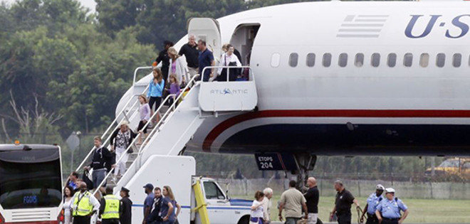 Autoridades dijeron que el vuelo 1702 de US Airways con destino a Fort Lauderdale, Florida se preparaba para despegar poco después de las 6 pm del jueves (2300 GMT) cuando un neumático del tren de aterrizaje delantero estalló, lo que obligó al piloto a abortar la maniobra.