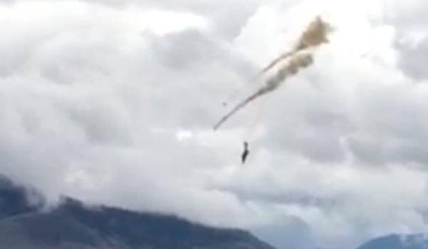 De acuerdo a este periódico, el piloto logró eyectarse del aparato antes del accidente y aterrizó gracias al paracaídas en el techo de una casa aunque parecía estar lesionado en la espalda y el cuello.