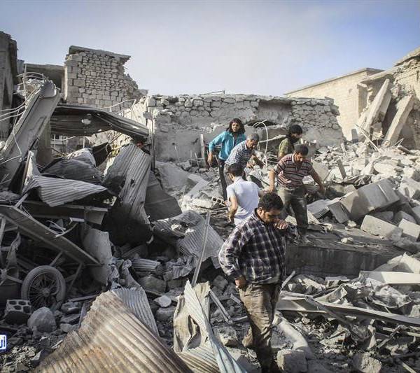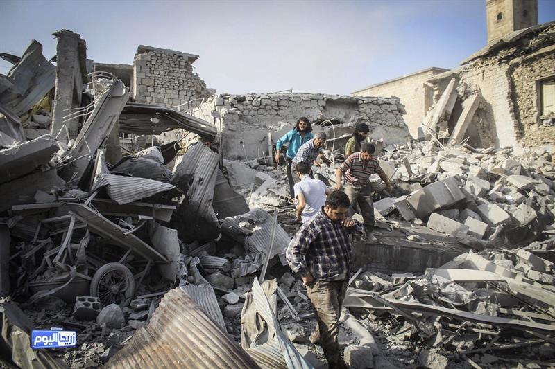 Los residentes del barrio golpeado, citados por el OSDH, reportaron que el avión cayó cerca de un mercado de verduras y provocó "una enorme explosión".